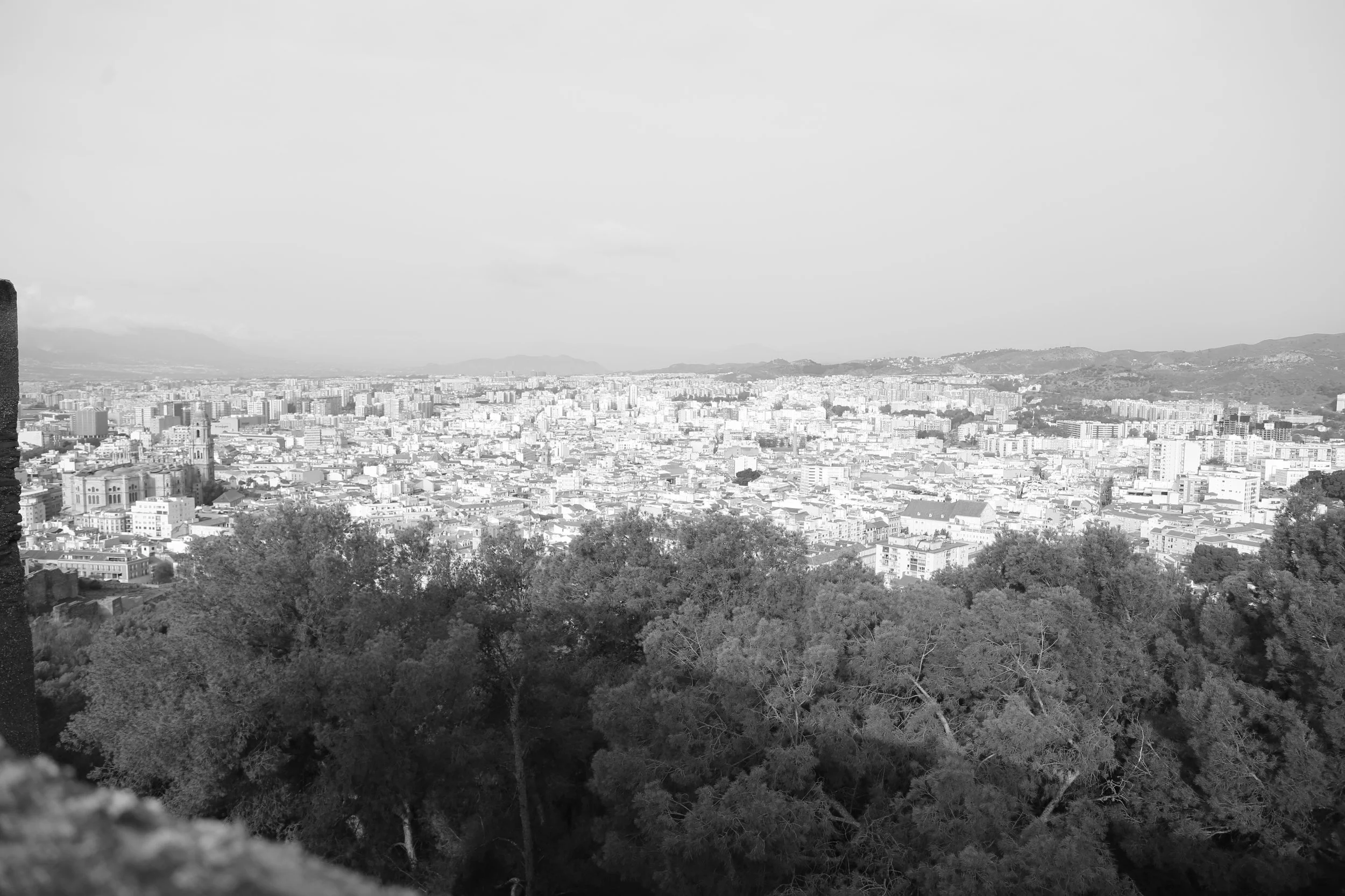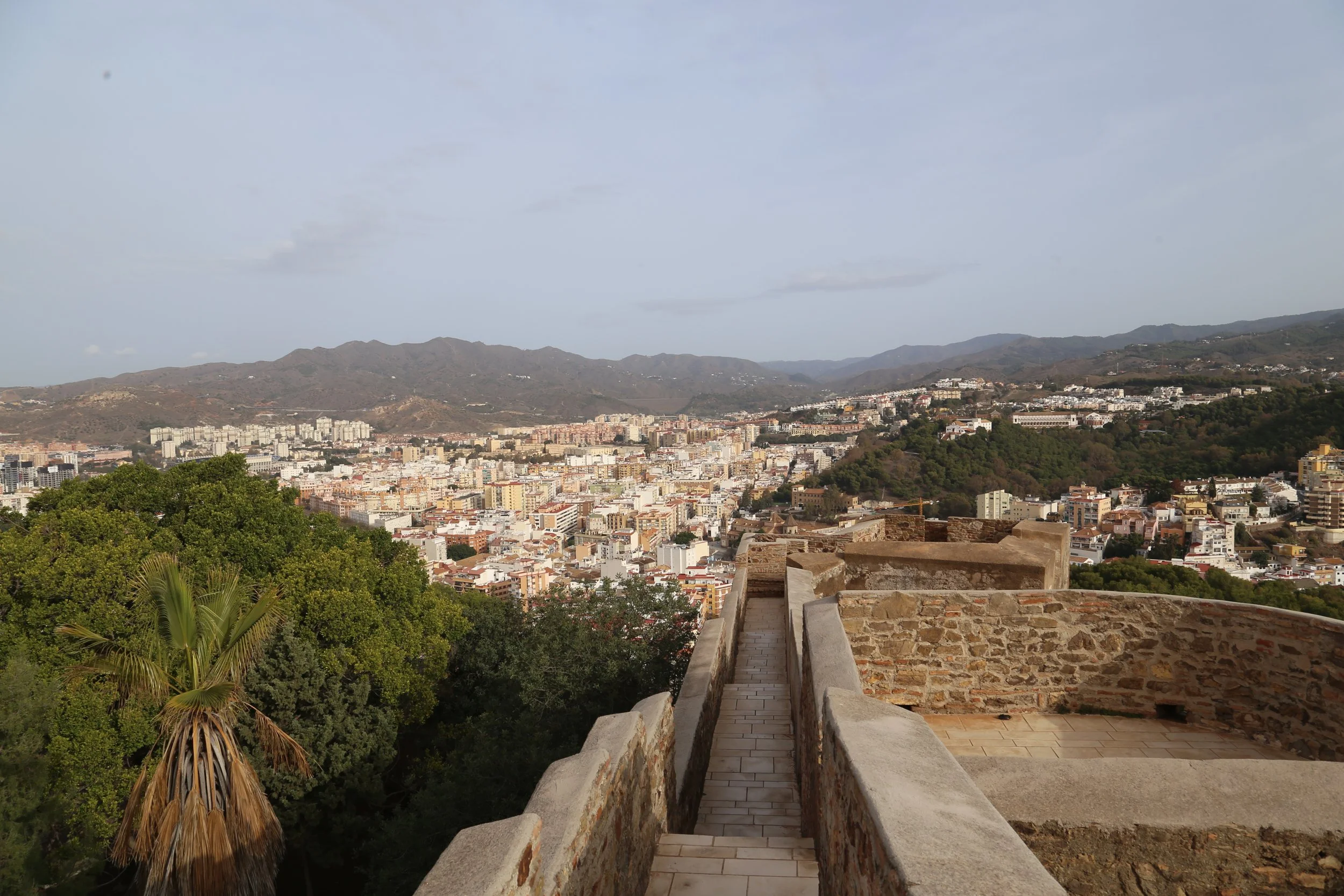 Para subir al Castillo de Gibralfaro hay que percorrer una larga subida llena de curvas y a cada curva puedes disfrutar de una vista más amplia a la ciudad, playa y puerto.
